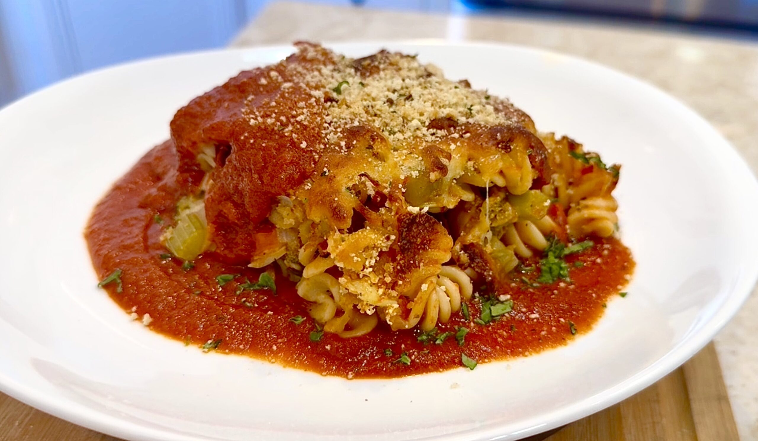A blend of vegetables Italian spices mild cheeses pasta and Love